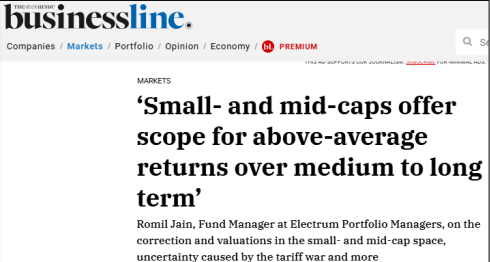 ‘Small- and mid-caps offer scope for above-average returns over medium to long term’ Romil Jain, Fund Manager at Electrum Portfolio Managers, on the correction and valuations in the small- and mid-cap space, uncertainty caused by the tariff war and more Despite valuations “coming down to attractive levels” during the ongoing correction, Romil Jain, Fund Manager, […]